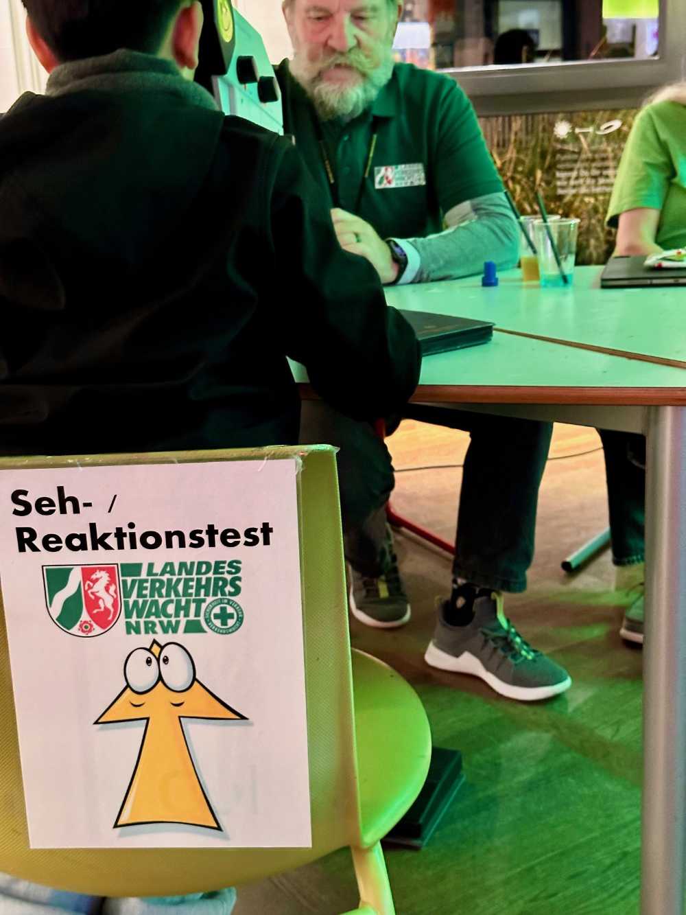 Die Verkehrswacht war mit dem Indoor-Sehtest vor Ort. Und die Forscher in spe freuten sich über reflektierende Preise!