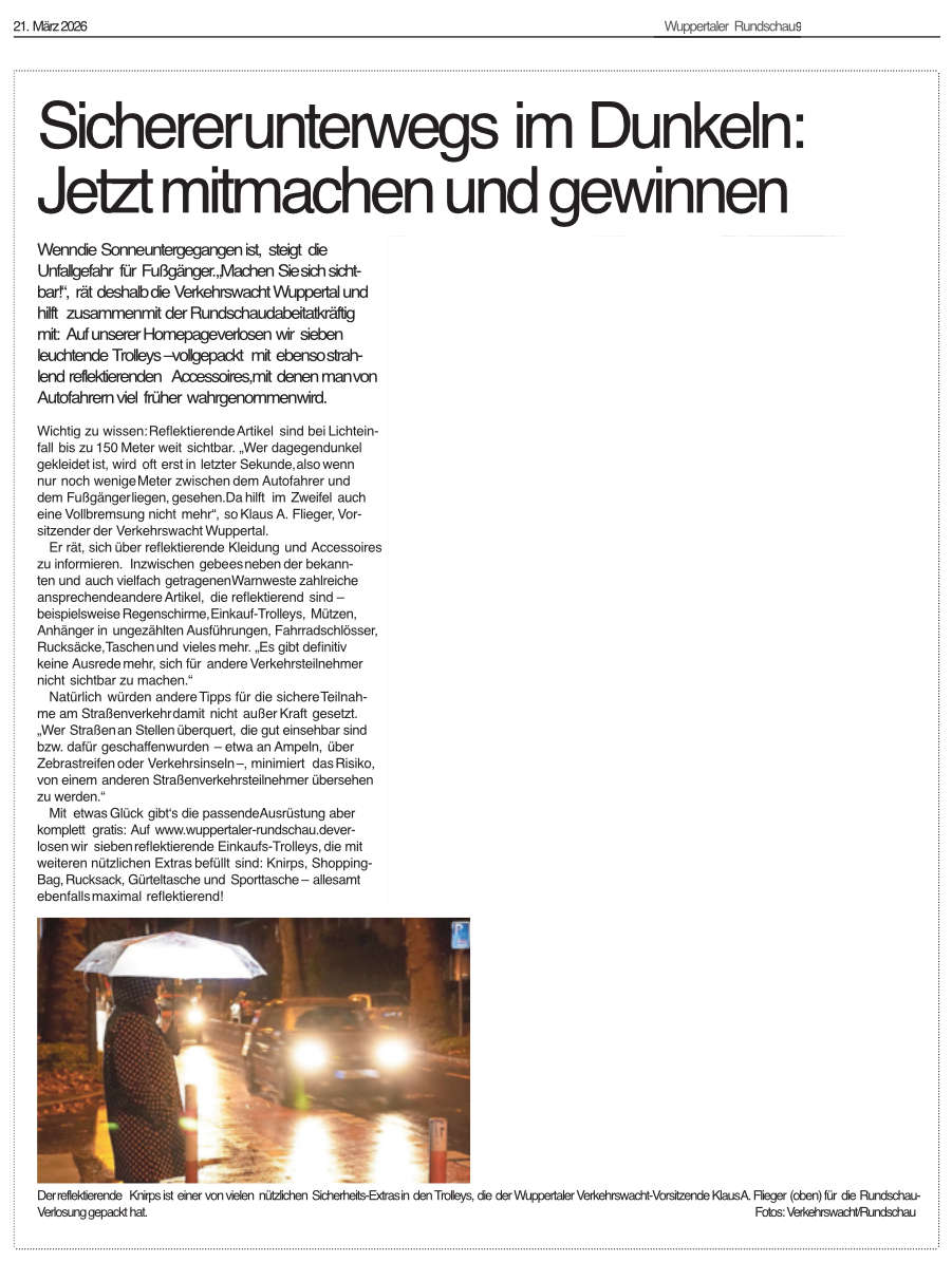 Sicherer unterwegs im Dunkeln Beitrags-Autor:dirosen Beitrag veröffentlicht:03/2026 Beitrags-Kategorie:Fotos / Presse Das könnte dir auch gefallen Siehst Du mich ? 12/2025 06.2018 – Sehkraft und Reaktionsvermögen testen 08/2019 03.2018 – Mitgliederversammlung 08/2019